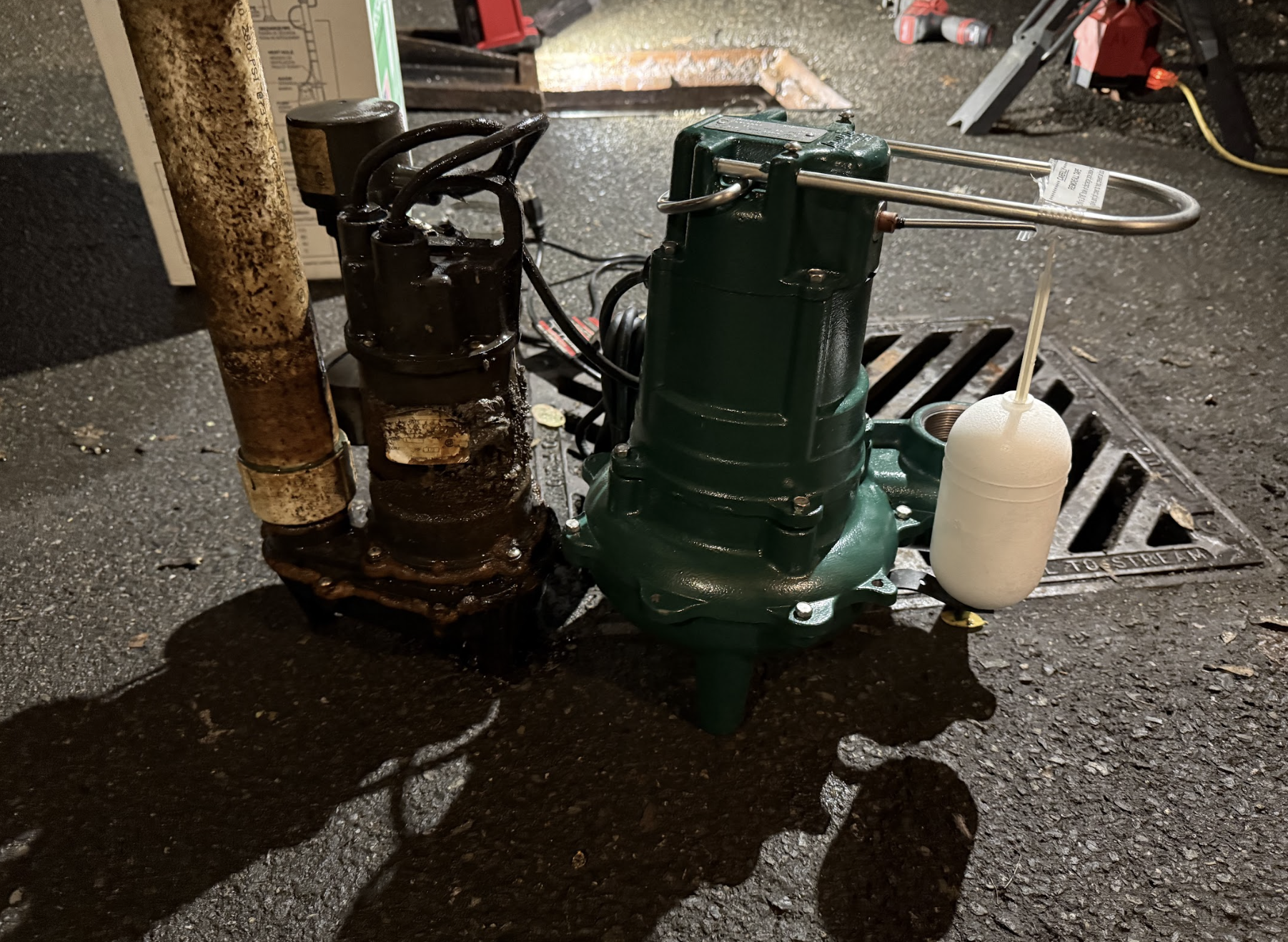 Our Sump pumps automatically turn on when the water inside the sump pit reaches a certain level. They pump water away from the house, ensuring your basement or crawl space remains dry during heavy rain or floods.